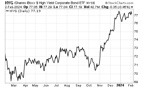 - Junk bonds have held up despite the disappointment. No fear of recession in high yield bond prices.