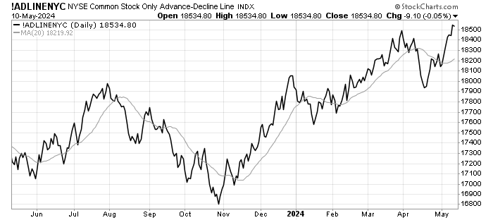 A single month of weaker economic report does not cause us to change our minds on the health of the US economy. Importantly, we see positive signals from financial markets. Market breadth has been improving, correcting the damage done by the recent sell off. The NYSE Advance-Decline index has risen to a new high, that is bullish!