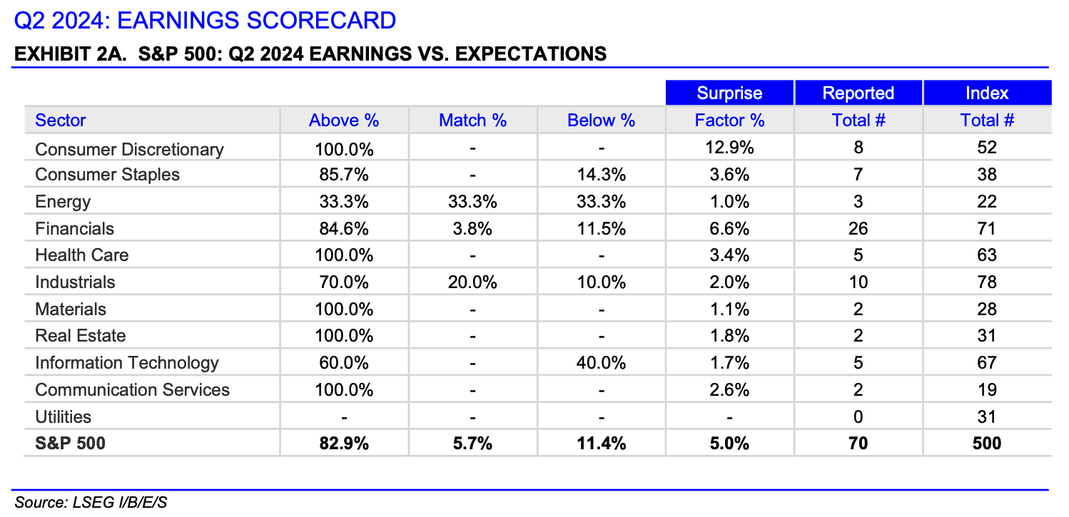 US earnings: More importantly, we kicked off Q2 earnings reporting in the US. According to Factset, “Of the 70 companies in the S&P 500 that have reported earnings to date for 24Q2, 82.9% have reported earnings above analyst estimates. This compares to a long-term average of 66.8% and prior four quarter average of 79%”. Earning season just started, so we will be watching how companies coped in Q2, and more importantly how markets react to the news.