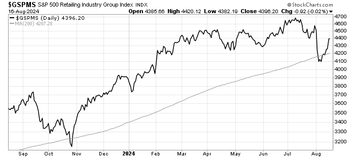 The July data for retail sales vindicated the strength of the American consumer. It is also confirmed by how retailing stocks are performing. Strong performance YTD and also a nice recovery of the panic selling on August 5.