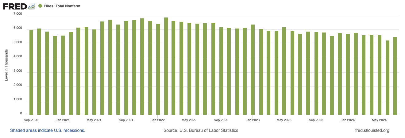 The labour market also disappointed, although the data improved from the previous month. The July non-farm payroll was revised downwards (from 114K to 89K). The August report was 142K, lowered than the expected 160K. Unemployment rate inched lower to 4.2%. The JOLTS report did not indicate a rise in layoffs, but hiring has eased.