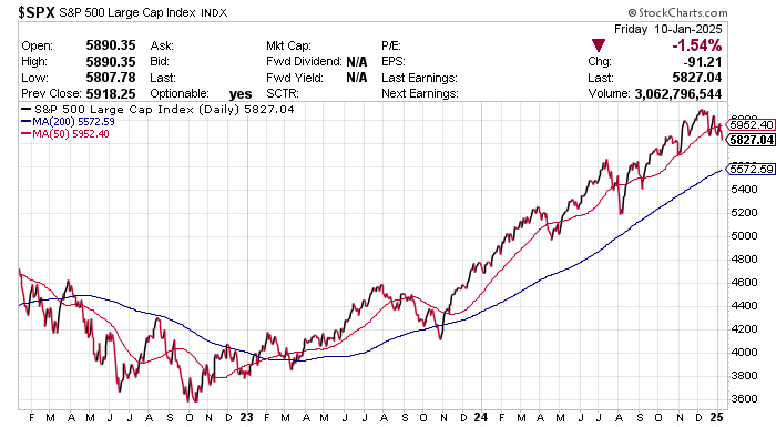 S&P 500 is down 0.93% year to date, down about 4.5% from its last peak in mid-December.