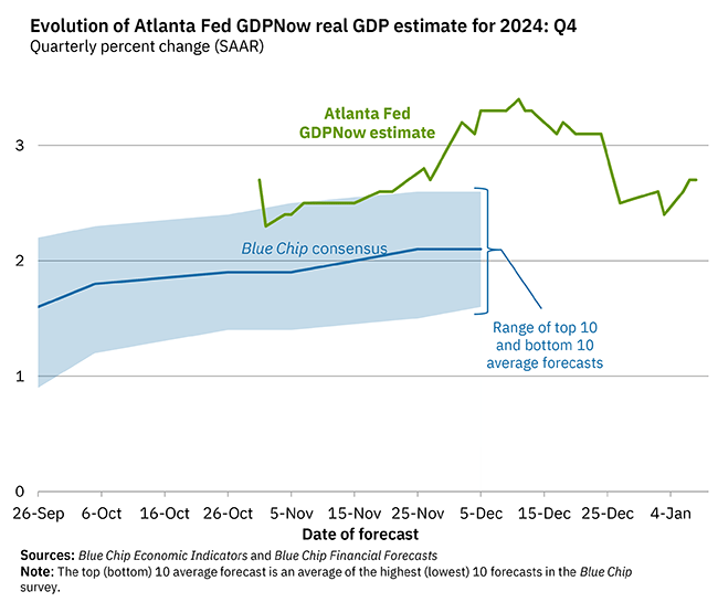 Bond yields are rising because the US economy is not slowing down sufficiently. Non-farm payrolls for Dec came in at 256K versus expectations of 160K and the previous reading of 212K.The unemployment rate fell, from 4.2% to 4.1%. ISM Services PMI registered 54.1 versus expectations of 53.3 and the previous 52.1. The Atlanta FED’s GDPNow for real GDP growth is 2.7%.