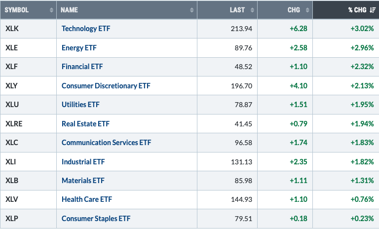 It is notable that the cyclical and technology ETFs have made the strongest recovery on Friday.