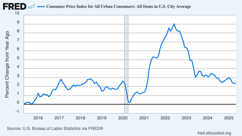 The latest US Consumer Price Index (CPI) report for May 2025 shows inflation rose 0.1% month-over-month, slightly below the expected 0.2%. Over the past 12 months, the CPI increased by 2.4%, matching estimates. Core CPI, excluding food and energy, also rose 0.1% monthly, below the expected 0.3%, with a yearly increase of 2.8%. Shelter and food prices each went up 0.3%, while energy prices dropped 1.0%, driven by lower gasoline costs. This suggests inflation is cooling slightly and tariff concerns have yet to push prices higher. The FED has slightly more room to ease rates.