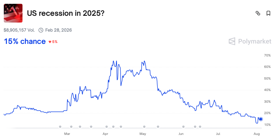 - Recession Probability: Prediction markets did not indicate a significant rise in recession risk, still at a 15% chance of a recession in 2025 for the US economy.