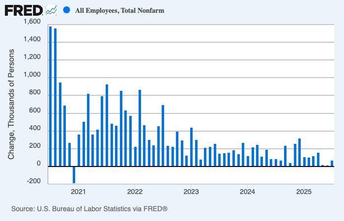 Looking back to January 2025, we see a deteriorating trend. The U.S. economy added 143,000 nonfarm payroll jobs in January, which already fell short of consensus expectations of around 175,000 jobs. The progressive weakening from 143,000 in January to essentially flat job growth in May/June and only 73,000 in July suggests a clear deceleration in hiring.